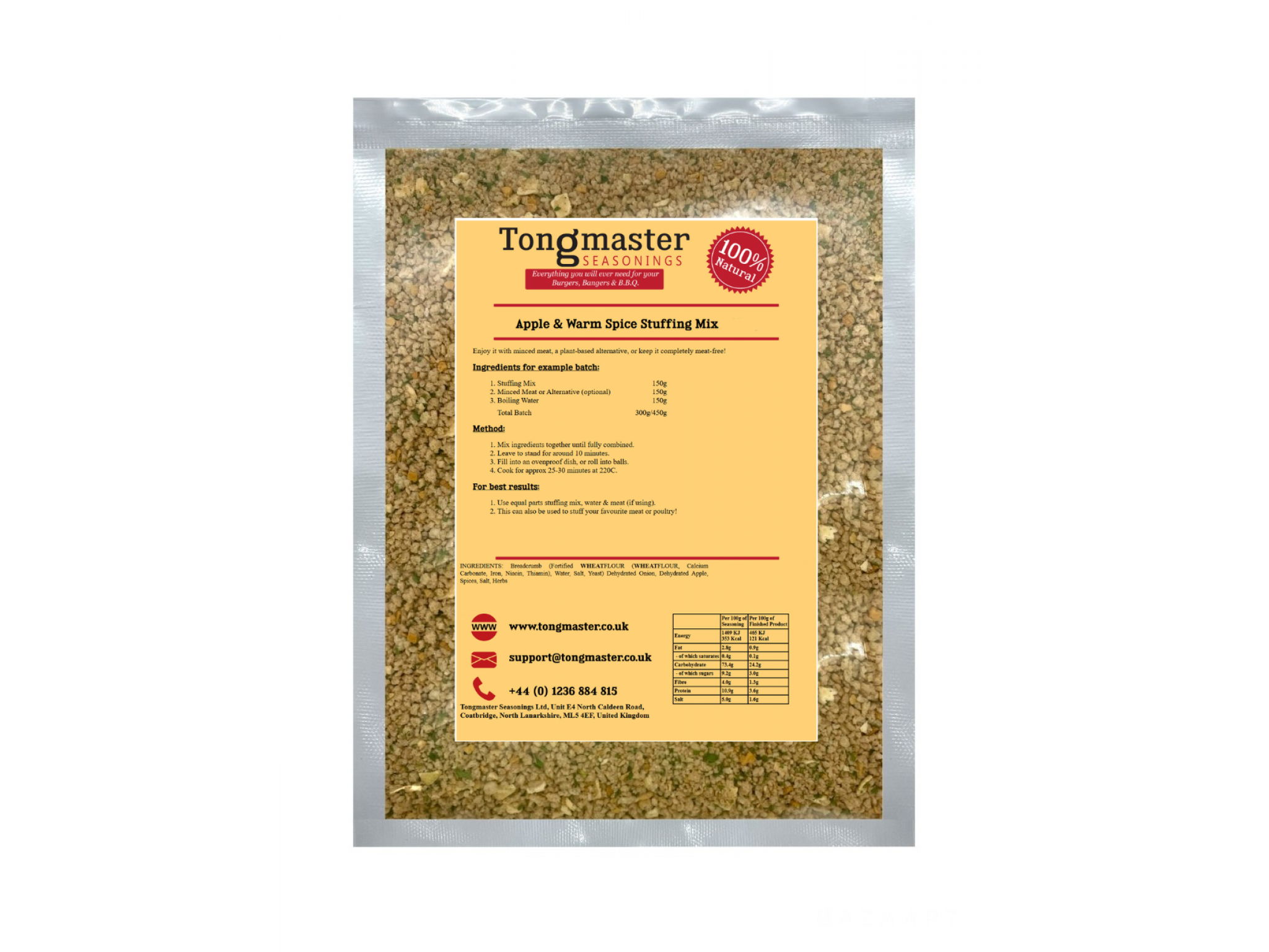 A cosy blend of sweet apples and aromatic warm spices, this stuffing mix brings comforting, homemade flavour to any meal.
