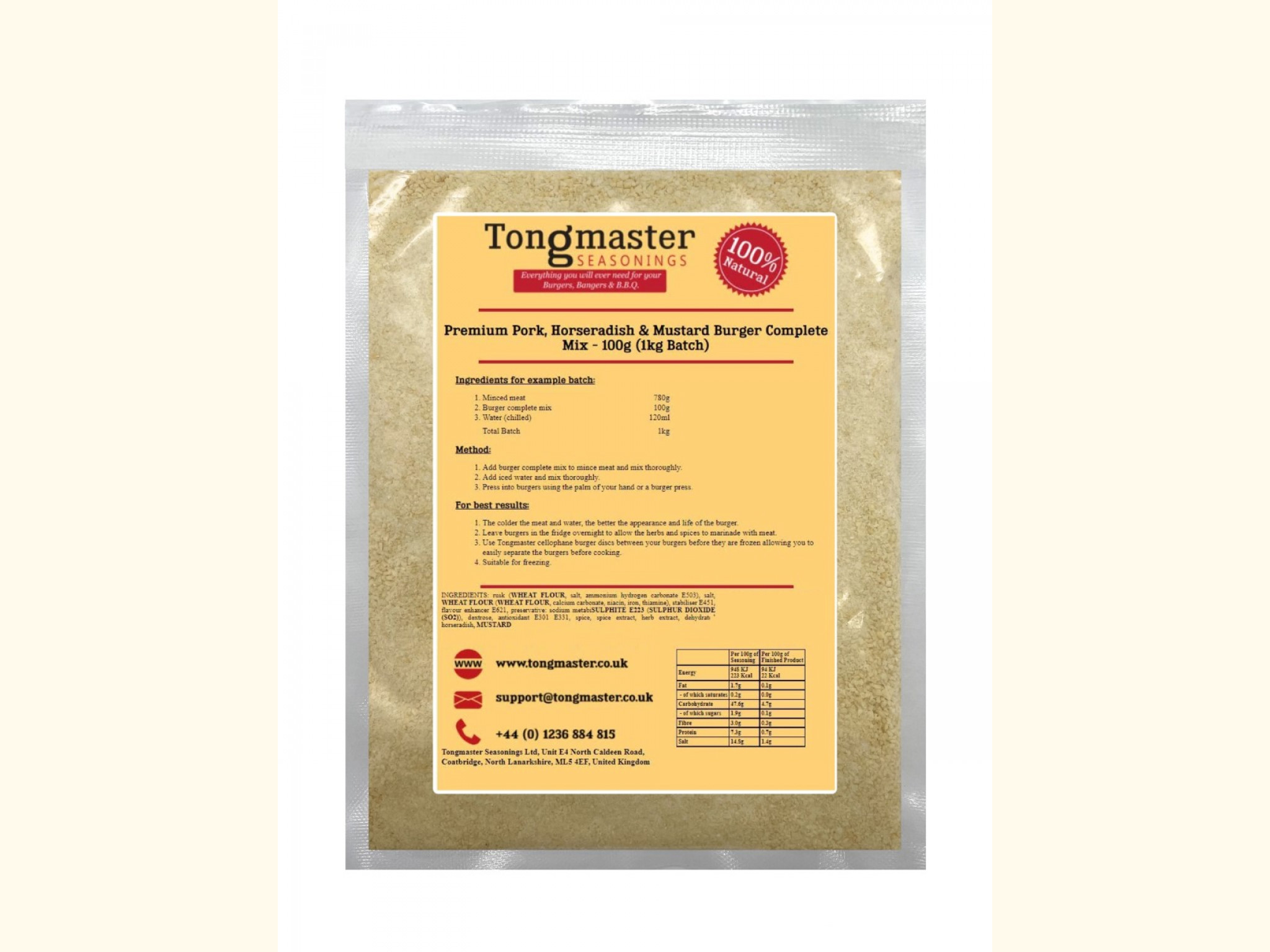 This burger seasoning contains a blend of horseradish and mustard which packs a peppery flavour with a rounded kick of mustard.